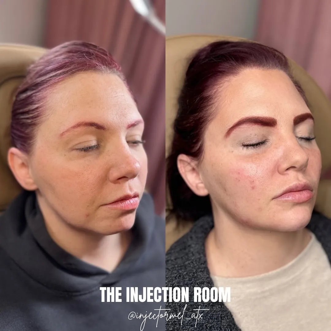 Return to work, lunch, or errands right away. Results begin appearing within one to five days depending on the product, with full results visible at two weeks. A complimentary follow-up is available if any touch-up is needed.